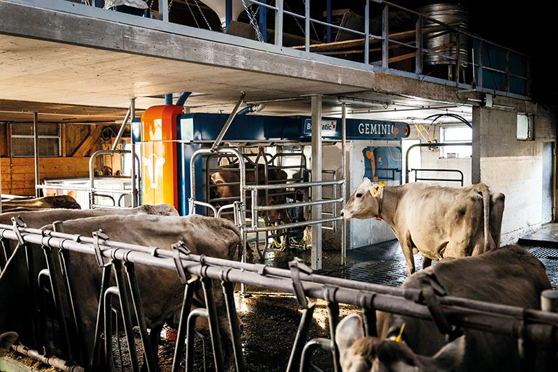 Il box del robot di mungitura Gemini è aperto e offre alla vacca una visuale libera, che la rende più tranquilla e rilassata, come se si trovasse ancora all’interno della mandria.